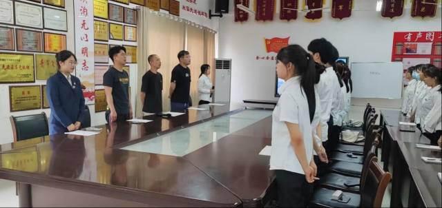为深入学习宣传贯彻党的二十大精神,进一步提高我校团员发展质量,为团组织注入新的活力,不断推动系部共青团改革向纵深发展。旅游商务系团总支于6月1日中午13:00在芳泽楼302开展业余团校开班仪式。参会人员分别是旅游商务系党支部组织委员任涵光老师、旅游商务系党支部文艺委员黄聪骢老师、旅游商务系团总支书记黄昊老师、旅游商务系团总支副书记曾微、旅游商务系团总支组织部钱佳欣以及2023年入团积极分子培训班学员。伴随着高昂的国歌声本次入团积极分子开班典礼拉开了序幕。仪式由旅游商务系团总支副书记曾微主持。