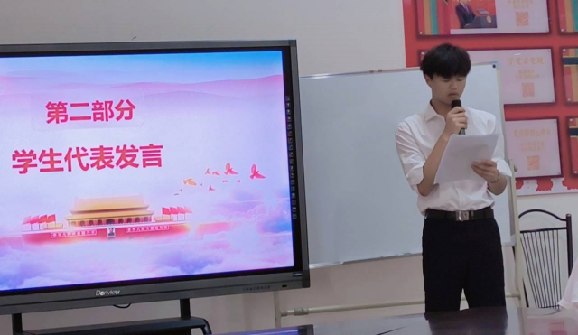 议程第二项由22城轨2班陈锐同学作学生代表发言,他表示,要珍惜这次宝贵的学习机会,严于律己,在学习中做表率,在生活中当模范,当好党的助手和后备军,我们要以青年行动为社会发展做贡献,在学习、工作及其他社会活动中起模范带头作用。