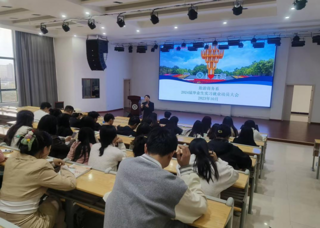 为扎实推进2024届毕业生实习工作,实现就业创业工作提质增效,更好培养学生的就业能力,确保2024届毕业生实习工作平稳有序开展。2023年11月10日中午,旅游商务系餐旅教研室100余名2024届毕业生实习就业动员大会在志学楼505举行。