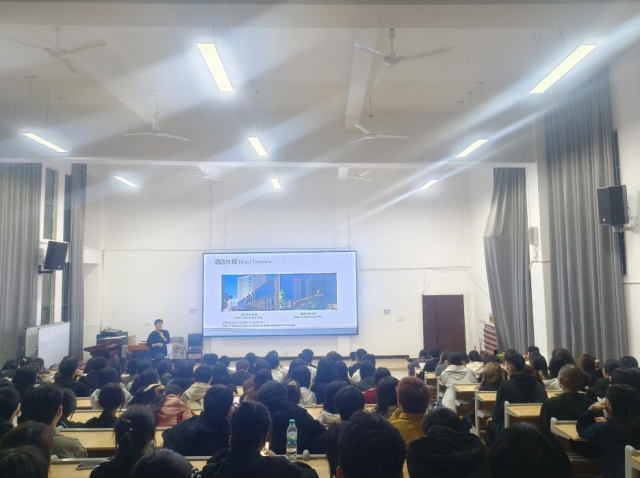 2023年11月23日晚,为进一步引导学生树立正确的择业观和就业观,提升职业生涯规划能力,增强就业竞争力,旅游商务系在学校志学楼214举行了以“规划精彩人生,打造锦绣前程——酒店管理与数字化运营专业就业指导”为主题的讲座。本次讲座由餐旅教研室主任曾希熙主持,南昌喜来登大酒店杨栋经理主讲,酒店管理与数字化运营专业全体学生聆听此次讲座。