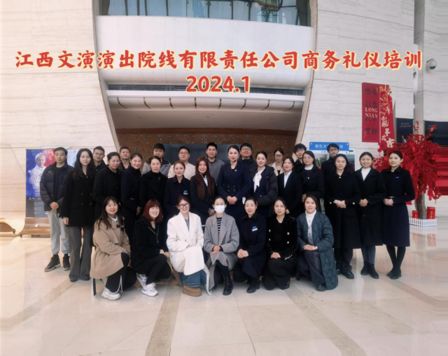 为提升员工商务活动的行为规范,强化个人礼仪习惯的养成,提升企业对外形象,助力江西文演演出院线有限责任公司青年职工队伍建设,2024年1月20日,特邀请曾希熙工作室为其司全体青年职工进行职场礼仪授课,重点讲解如何培养职场素养。保持良好个人形象、职场接待礼仪规范等内容。