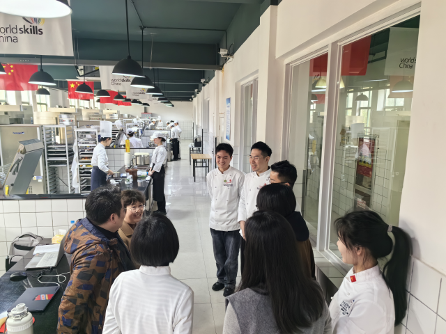 2024年3月8日,第47届世界技能大赛糖艺/西点制作项目第五轮集训在江西省工贸高级技工学校拉开帷幕。来自全国各地的国家队专家、教练、队员荟萃在工贸的世赛集训基地,开始为期十天的紧张训练。学校党委委员、副校长胡晖、旅游商务系主任谢恺等一行前往训练现场看望教练、选手,并与他们亲切交流,鼓励大家要有信心,加紧训练,争取在世赛中取得好成绩。