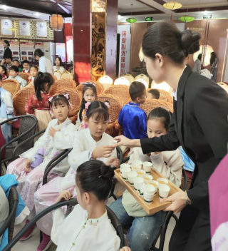 为了培养孩子们对中国传统茶文化的兴趣,弘扬中国传统茶艺文化,旅游商务系携手新向标少儿培训中心于2024年11月3日在茗馨阁茶艺馆开展了以“做彬彬有礼的小茶人”为主题的茶艺公益课程。本次活动旅游商务系副主任韩莹、童话一“夏”创客空间的学生志愿者们以及新向标培训中心的幼儿共同参与此次活动。 此次活动不仅让孩子们亲身体验了茶艺的独特魅力,更在他们心中种下了礼仪之邦的种子。为孩子们打开了一扇通往中华传统茶文化的奇妙大门,在这里,孩子们努力成为彬彬有礼的小茶人。 品茶韵 在活动现场,孩子们穿着统一的汉服,仿佛穿越回了千年前的古代茶室。他们怀揣着好奇与兴奋踏入这个充满茶香的世界。茶艺师首先给孩子们品茗红茶,并由茶艺师王甜给孩子们讲述茶文化的重要性,孩子们发出阵阵惊叹声,表达对茶艺之美最初的感知。