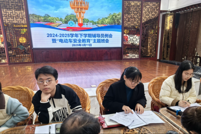 旅游商务系副主任黄婧老师于2025年3月11日13:00组织辅导员团队在“婧姐”名班主任工作室召开例会,深入讲解了电动车安全骑行的重要性以及环境保护的紧迫性。辅导员们纷纷表示,将积极响应系部号召,将电动车安全及环保意识融入到日常的学生管理和教育中,通过主题班会、团课等形式,进一步加强学生的安全教育和环保意识培养。