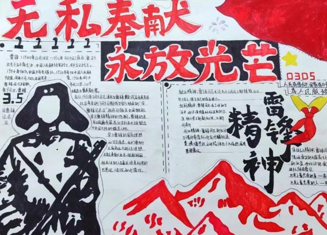 为深入学习贯彻落实习近平总书记对深入开展学雷锋活动做出的重要指示精神,弘扬“全心全意为人民服务”的雷锋精神和“奉献、友爱、互助、进步”的志愿精神。旅游商务系于雷锋月期间组织了一场以“传承雷锋精神,绽放青春光芒”为主题的手抄报活动。 同学们用丰富的想象力和精湛的画工,将雷锋同志的生平事迹、经典语录与新时代志愿服务精神巧妙融合。这些作品不仅内容丰富、形式多样,而且色彩鲜艳、版面设计精美,充分展示了同学们的艺术才能和创新思维。 第二期优秀作品