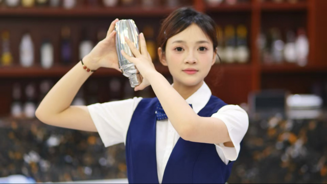活动现场,旅游商务系的同学们化身专业的酒水服务人员,以优雅的姿态、娴熟的技艺,向观众呈现了一场视觉与味觉交融的盛宴。在鸡尾酒调制展示环节,同学们手持调酒器,熟练地进行量酒、摇酒、滤酒、装饰等操作。随着各色基酒与辅料的巧妙融合,一杯杯造型精美、色彩绚丽的鸡尾酒在他们手中诞生。每一款都凝聚着同学们的创意与巧思,也展现出扎实的专业功底。