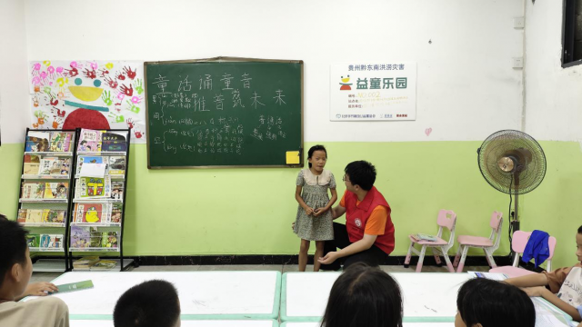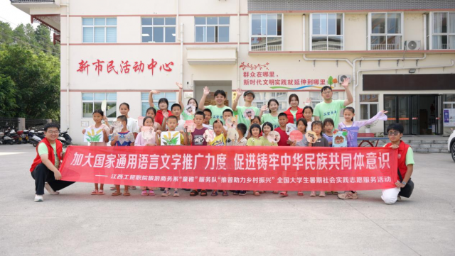 公益课堂暖童心,推普共绘同心圆|江西工贸职院旅游商务系“童稚”服务队前往贵州省榕江县开展推普助力乡村振兴活动(四) 为深入贯彻国家关于加大国家通用语言文字推广力度的精神,推动普通话普及工作扎根基层,江西工贸职院旅游商务系“童稚”服务队前往贵州省榕江县车民街道阳光社区、新市民社区等为孩子们开设了推广普通话、防溺水、五粮文化等主题的爱心公益课堂。 在推广普通话的课堂上,志愿者以生动易懂的语言向孩子们解释了推广普通话的8意义,让孩子们明白普通话作为全国通用语言,在沟通交流、文化传播中的重要作用。