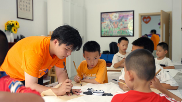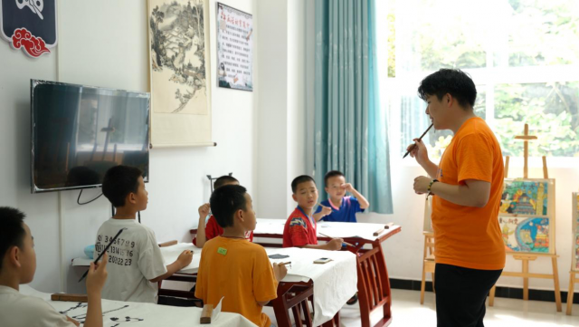 随后,志愿者手把手教孩子们正确的握笔姿势,并耐心示范讲解基础笔画的写法,纠正孩子们的运笔习惯,鼓励他们在练习中体会毛笔字的韵味。