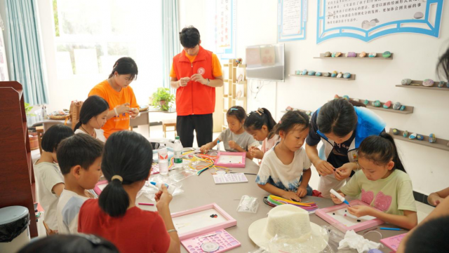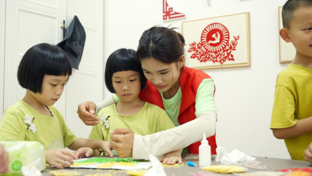 此次活动通过针对性教育,不仅切实提升了儿童增强防溺水的安全意识,掌握了基础自救技能,更让他们认识到急救技能的重要性。 在手工课堂上,志愿者分别为社区的孩子们介绍了漆扇、衍纸和五谷粮食画的传统工艺与文化价值,围绕推广普通话为主题,将传统文化和学院特色的五谷粮食画融入到体验式教学中,特别是在通过指导学生开展五谷粮食画,让学生不仅能在动手创作过程中感受推广普通话的内容,也能在五谷粮食画的体验中直观感受粮食来之不易,倡导孩子们从日常做起,学会珍惜粮食。