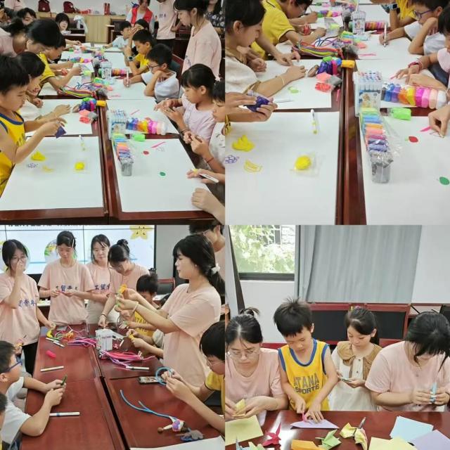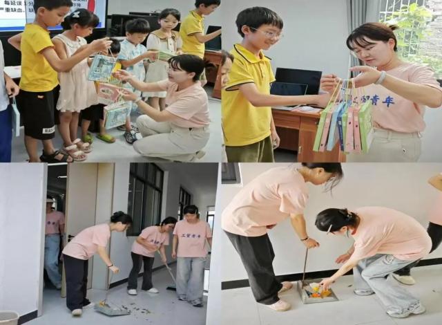 在手工活动课堂,志愿者们化身“巧手导师”。乡村儿童的创造力培育是乡村振兴“人才振兴”的基础工程,志愿服务队以手工创意课堂为载体,构建起激发儿童想象力与创造力的育人场景。彩纸、黏土、扭扭棒等简单材料,在志愿者的引导下成为激活童心的“创意媒介”。作品分享中,孩子们互动协作,让创造力共振,唤醒“创新基因”。