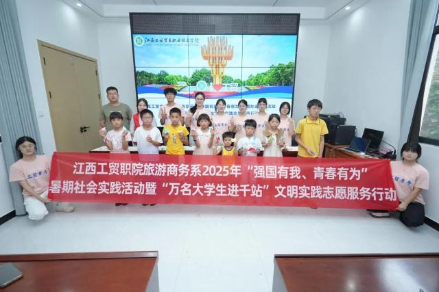 践行青春使命温暖童心同行——江西工贸职院旅游商务系2025年暑期“三下乡”实践活动暨“万名大学生进千站”志愿服务实践活动 青春理想扎根乡土,教育初心对接乡村需求。7 月 13 日,在新圩镇民政领导和栗溪村委会书记等基层力量的协同支撑下,江西工贸职院旅游商务系 “童稚” 志愿服务队深入吉安市青原区新圩镇栗溪村新时代文明实践站开展一系列实践活动,借 “万名大学生进千站”文明实践,将学识化为助力乡村儿童成长的力量,以青春步履丈量基层,用实干诠释新时代青年的使命。 暑期溺水高发,志愿者们化身“安全导师”。实践队在新圩镇栗溪村新时代文明实践站开设 “安全知识教育” 公益课堂。通过情景模拟、趣味动画与互动问答,深入浅出讲解防溺水知识,详述私自下水风险、自救技巧及施救方法,将 “防溺水六不准” 化为孩童易懂语言。孩子们踊跃互动,在轻松氛围中掌握要点,“珍爱生命 远离危险水域”的准则深植心间。