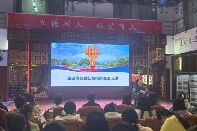 影辉映初心路青春奋进正当时——旅游商务系举办红色观影活动 秋意渐浓,情暖人心,热情不减。2025年10月20日,旅游商务系在赣鄱青穗工作室成功举办了一场别开生面的红色主题观影活动。学管员肖琴琴主持活动,与同学们共同踏上了一场关于梦想、教育与成长的精神之旅。