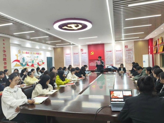 凝心铸魂学全会 笃行实干建新功丨江西工贸职院旅游商务系学习贯彻党的二十届四中全会精神为深入学习贯彻党的二十届四中全会精神,引导全系学子切实把思想与行动统一到党中央决策部署上来,将全会精神转化为砥砺成长、矢志成才的强大奋进力量,旅游商务系团总支在全系范围内统筹组织各班级开展专题学习活动,推动全会精神在青年学子中落地生根、入脑入心。 领全会核心精神 团干部示范强信念 为深入学习贯彻党的二十届四中全会精神,旅游商务系团总支组织学生会干部、各班级团支书开展专题座谈会,推动全会精神在青年学子中入脑入心。本次座谈会由系团总支书记黄昊老师领学,以“领学精神、交流感悟、部署实践”为主线有序推进。为各班级未来开展团支部政治学习和团日活动开展提供了样板和思路。