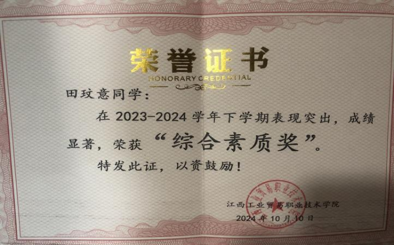 “少年当有凌云志,万里长空竞风流。”在专业课的学习中,深知自身的不足,认真学习专业课知识,努力解决每一个难点,扎实学习,争做奋进者,不断向“更好”迈进。在课程学习之余努力学习英语,顺利通过英语四级。大一、大二整个学期成绩都位于班级第一。我也不止步于满足现有的成绩,未来将以谦逊的态度不断学习,争取取得自己更满意的成绩。 “征程万里风正劲,重任千钧再奋蹄。”在部门的工作中努力做好本职工作,培训实训班级的小组成员怎样做好实训工作。在培训工作中勇敢面对面对困难,锻炼了自身的应对能力,勇于担当职责。 允许一切发生,然后接受一切结果,才能遇见一切可能。要相信,好事总会发生在下一个转弯,真心和坚持终会把你带到你该去的地方。愿你我都能拥有坚定的内核,一直走在开满鲜花的路上吧! |