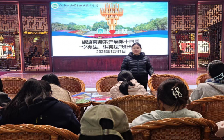 随后,旅游商务系学管员肖琴琴围绕主题活动方案进行详细解读,明确班长在班级学习中的组织协调职责,鼓励各班结合专业特色设计差异化活动形式,确保宪法学习入脑入心。班长们积极交流思路,纷纷表示将全力配合落实各项学习任务。 当日晚间,各班级陆续开展“学宪法,讲宪法”主题班会。班会现场,辅导员通过PPT讲解、宪法条文诵读、典型案例分析、法治视频观看等多种形式,向学生普及宪法的起源、发展、核心内容及重要意义。同学们纷纷表示要将宪法知识内化于心、外化于行,在学习生活中严守法律底线,争做新时代法治青年。