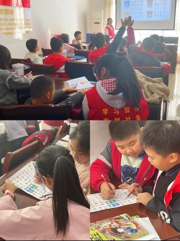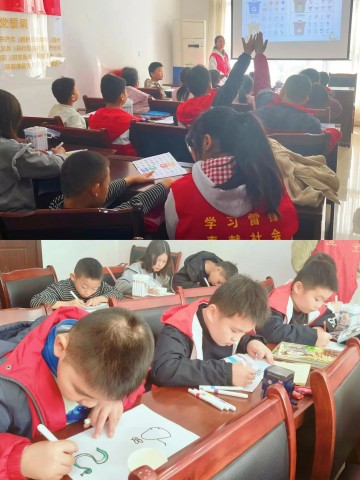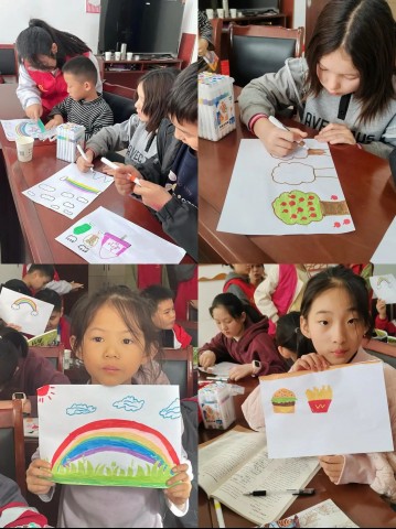 “奇妙的颜色王国”环节里,向孩子们讲解三原色混合的奥秘。随后,孩子们拿起画笔手绘专属小彩虹,红、黄、蓝三色在画纸上碰撞出创意,有效提升了审美与动手能力,激发了对色彩艺术的热爱。 在“安全小卫士大闯关”环节里,聚焦实用安全知识。志愿者通过趣味视频,引导孩子们识别高空抛物、楼梯打闹、教室追赶等校园危险行为;随后通过图文讲解向孩子们普及“不触碰插座、不攀爬窗户、远离转动风扇”等居家安全常识,让孩子们在互动问答中筑牢安全防线。