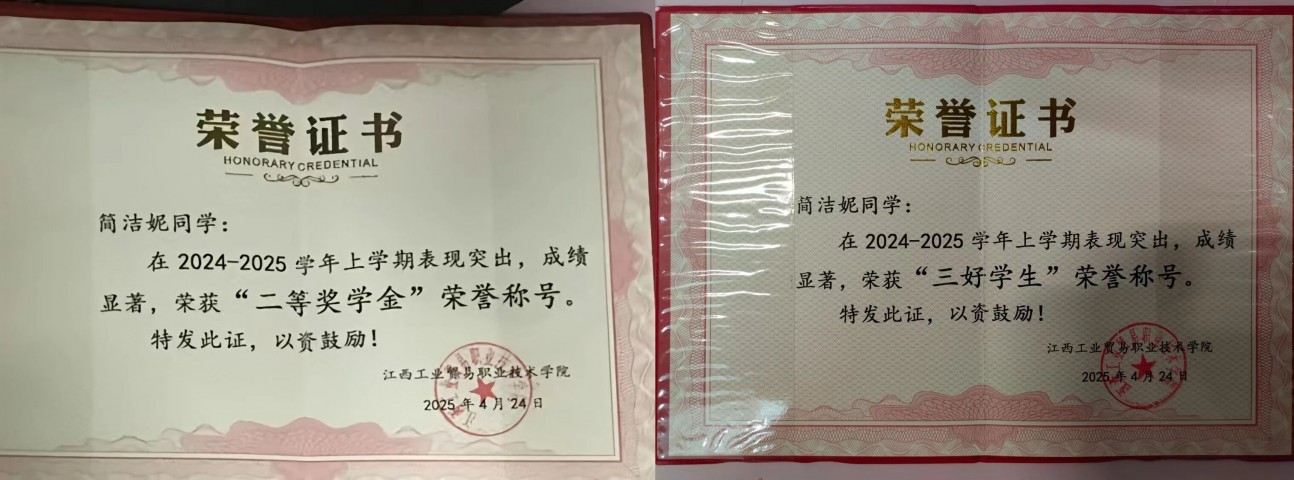 砥砺前行绽芳华 青春执笔谱新篇|风采人物第七十期——简洁妮 简洁妮,女,共青团员,2024级婴幼儿托育服务与管理专业学生。现担任团支书一职,喜欢美术,摄影,手工,热爱学习,曾荣获2024-2025学年二等奖学金以及三等奖学金,后又获评"三好学生"称号。我会始终保持积极进取敢于尝试的心态,严格要求自己。座右铭:“相信自己,不质疑,不否定,不动摇。” 在思想上,作为共青团员,我始终坚定理想信念,主动关注时政热点,不断提升政治素养与思想觉悟。担任班级团支书期间,我切实履行职责,定期组织团日活动,如“学习二十大精神”主题分享会、“红色故事诵读”等,通过多样化形式带动班级同学共同进步;日常中主动关心同学思想动态,针对个别同学的学业焦虑或生活困惑,耐心沟通疏导,协助凝聚班级向心力,以实际行动践行共青团员的责任与担当。 在学习上,我始终将学业放在首位,摸索出“课前预习标疑、课中专注记录、课后复盘梳理”的学习方法。面对专业难点,会主动泡图书馆查阅资料,或与同学组队研讨。学习不仅是为了获取知识,更是为了培养解决问题的能力,这份能力将成为我未来人生道路上最坚实的依靠。凭借这份钻劲,先后斩获校级二等奖学金、三等奖学金,还因综合表现突出获评“三好学生”,用扎实的成绩为后续发展打下坚实基础。