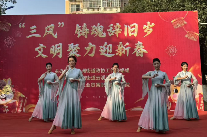 12月29日下午,以“三风”铸魂辞旧岁,文明聚力迎新春为主题的元旦文艺汇演,在我系长期共建的优秀社区教育示范基地——云溪花园社区圆满落幕。江西工业贸易职业技术学院旅游商务系师生受邀参与演出,将专业特色与文化惠民相结合,为社区居民献上了一场兼具年味与内涵的视听盛宴。