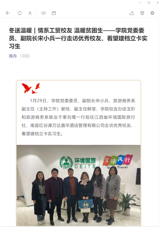 江西工贸学院旅游商务系大家庭热忱欢迎您的加入!