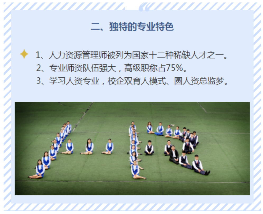 本专业主要面向沿海发达地区的外资、大中型企事业单位的人力资源部从事员工招聘、员工培训、员工薪酬、绩效和员工关系处理等基础与管理工作;也可以在智联招聘、前途无忧、中华英才网等大型专业人才网站从事信息收集、分类和统计分析等人才服务和猎头工作。