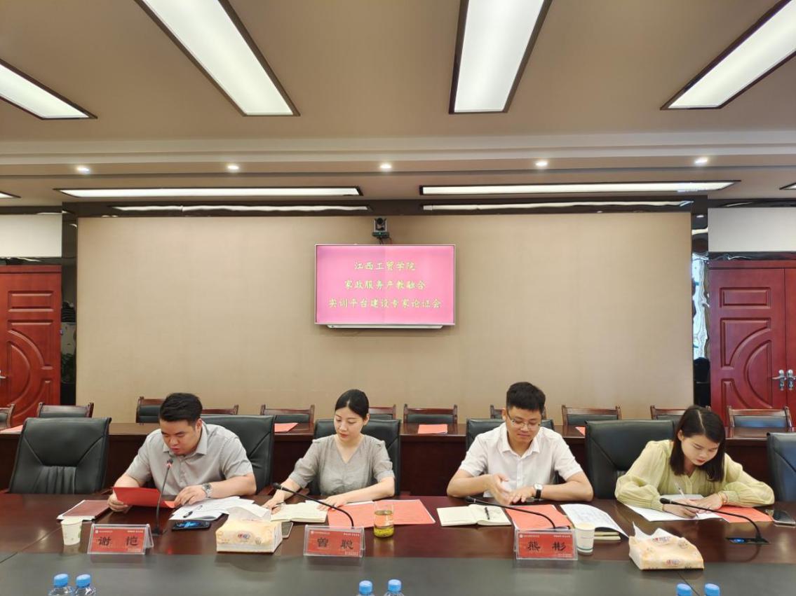 2021年6月8日上午9点,“江西工贸学院家政与健康养老服务产教融合实训平台专家论证会”于求是楼417会议室召开。江西省14个家庭服务行业地方标准起草小组负责人、执笔者江西省家庭服务业协会会长张建华,江西倍邦家政职业培训学校培训专家,江西省妇幼保健院原妇科主任医师闾锦秀,江西因为爱月子中心创始人、总经理、解放军九四医院原主任护师晏兰一行三位专家来校进行项目论证。教务处处长曾聪,产学研培发展中心副主任熊彬(主持工作)以及旅游商务系商务教研室主任周万中及相关专业教师出席会议,会议由旅游商务系副主任谢恺(主持工作)主持。
