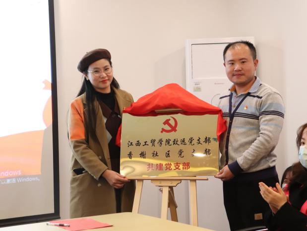 第二阶段,座谈结束后,致远党支部副书记黄婧与红谷滩区红角洲管理处香榭社区党支部站长胡绪同现场签署“结对共建”协议并启动揭牌仪式。