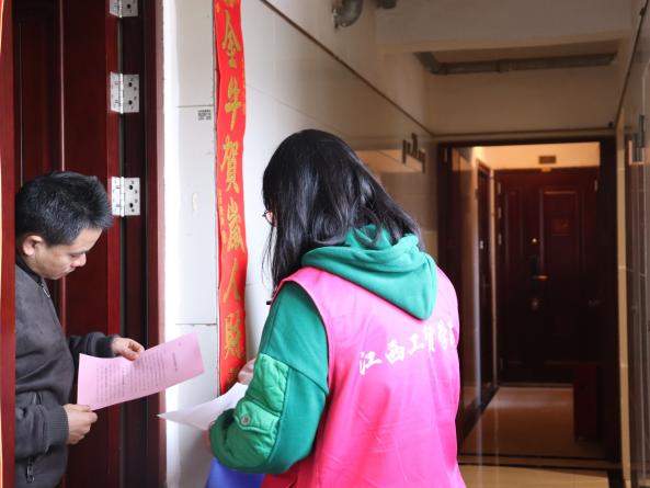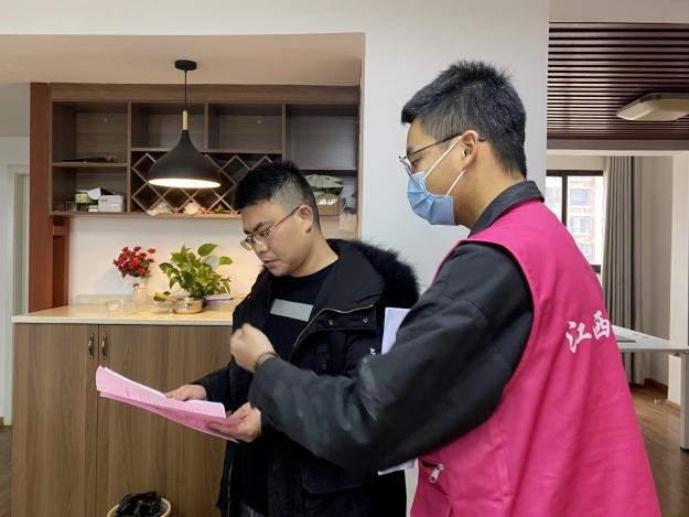 第三阶段,致远党支部与红谷滩区红角洲管理处香榭社区党支部党员同志深入社区联合开展了入户调研活动,并在走访过程中帮助居民检查了楼道消防安全等。