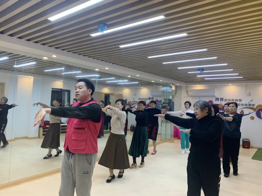 同时,致远党支部开展了文艺进社区活动,由致远党支部吴龙飞老师教社区老年居民跳广场舞。社区居民们在吴老师的指导下,大家伴随着《站在草原望北京》的音乐节奏,跳起时尚的广场舞,大家的参与热情十分高涨。伴随着欢快的音乐,大家舞步动作整齐统一,成为了香榭社区党支部党员活动室里一道靓丽的风景线,现场氛围温馨融洽。