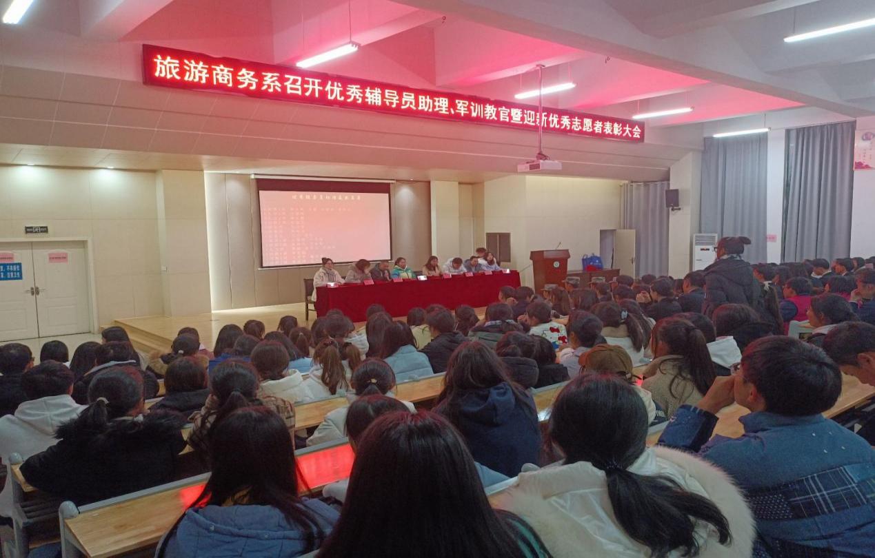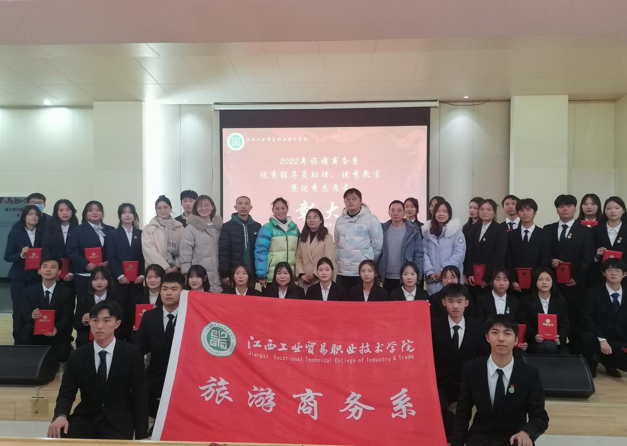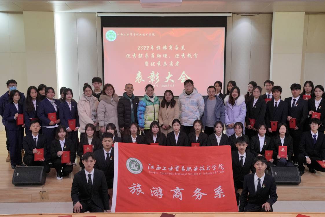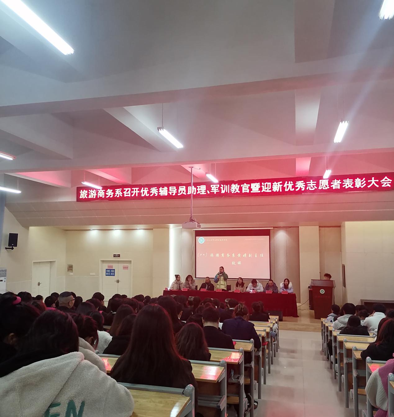 为表彰先进、树立典型,弘扬“奉献、友爱、互助、进步”的志愿者精神,2022年12月5 日晚上18:30,旅游商务系在志学楼504召开优秀辅导员助理、军训教官暨迎新优秀志愿者表彰大会,此次表彰大会由学管员刘萍老师主持,旅游商务系黄婧副主任、旅游商务系组织委员任涵光、团总支书记黄昊老师、班主任张洪照、彭芸、汪思园、熊超越老师参加了本次表彰大会。