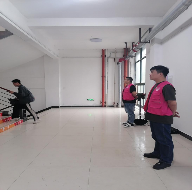 值班过程中,值班学生各个站姿挺拔,抬头挺胸,双手靠背,遇学生经过时施以礼貌关心问候,并结合手势引导同学走正确的通道,充分展现了学生、教师良好的精神风貌,始终做好师生安全服务事项工作。