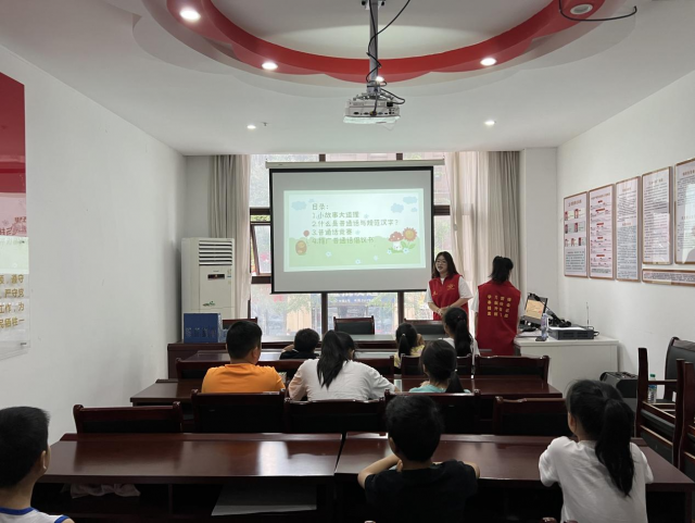 课程开始由主讲人张孟琪向孩子们讲述说好普通话的意义,并分享了一些关于普通话的小故事,让孩子们对为什么要讲好普通话有更深层次的认识。随后由陈美瑞带领孩子们玩起了普通话规范字竞赛,用绕口令、识别多音字、和区分混淆字等小游戏与孩子们互动起来,在该过程中孩子们积极举手抢答,这不仅激发孩子们主动思考问题,也能巩固课堂上学习的知识。