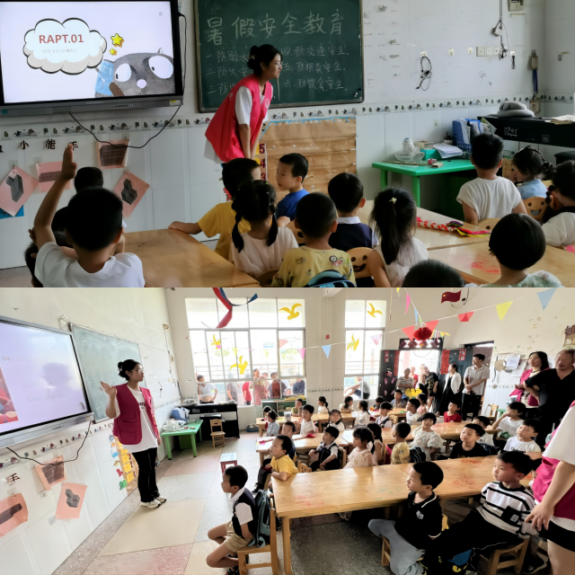 本次课堂恰逢幼儿园的期末,志愿者们便借此机会给孩子们带来一堂假期前的“最后一课”。 正值暑期放假,志愿者们首先给孩子们讲到了暑期安全教育,主讲人陈雨欣结合防溺水等六个主题再次给幼儿园的孩子们强调了暑期安全的重要性,并也提醒在场的所有家长们一定要强化安全意识,为孩子过一个快乐的暑假筑牢安全防线。