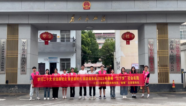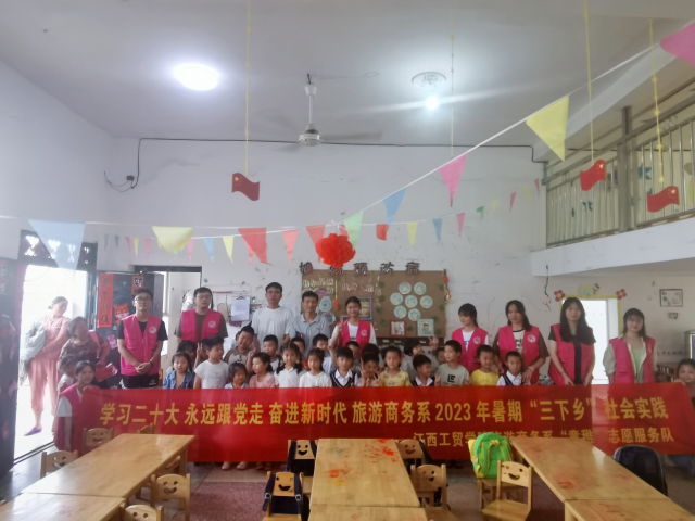 为深入贯彻学习习近平新时代中国特色社会主义思想和党的二十大精神,贯彻落实习近平总书记关于青年工作的重要思想,引导和帮助广大青年在社会课堂中“受教育、长才干、作贡献”,助力乡村振兴,6月26日,旅游商务系“童稚”服务队出发前往上饶市万年县裴梅镇开展暑期“三下乡”社会实践活动。