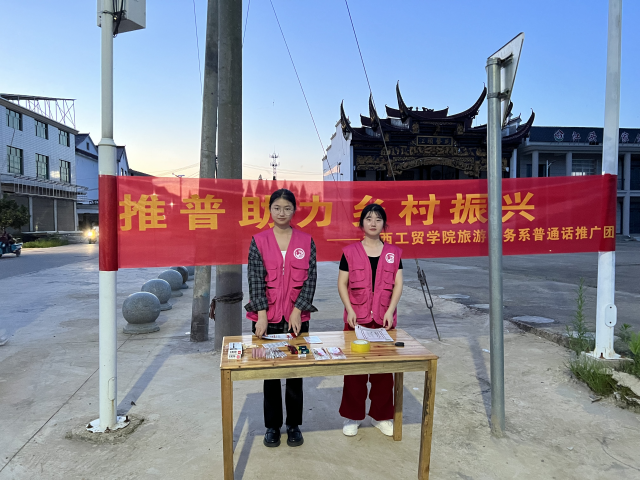 推广普通话,助力乡村万年 晚上七点,“童稚”志愿服务队来到裴梅镇街道,开展“推普助力乡村振兴”的普通话推广活动,通过组织当地村民参与“说普通话,赢小礼品”的小游戏,来帮助当地村民纠正错误发音,鼓励他们多讲普通话、讲好普通话。志愿者们在人群穿梭的街道上向往来村民宣传普通话的相关知识及推普意义,倡议村民们在日常生活中养成说普通话的好习惯。