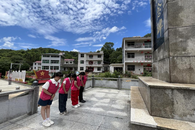 随后,志愿者们来到坞头暴动纪念碑前,大家怀着虔诚的心情,向在坞头暴动中牺牲的革命先烈默哀,深切缅怀他们的丰功伟绩,感悟他们英勇顽强、不怕牺牲、无私奉献的崇高革命精神。