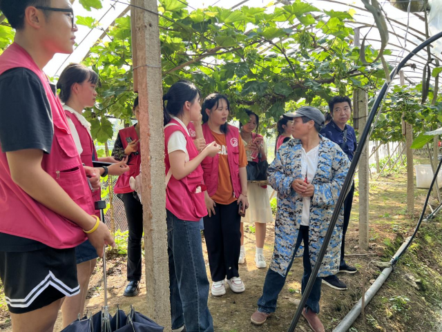 最后,何书记带领志愿者前往富有有机葡萄采摘园,何书记向大家介绍到,这是由当地贫困家庭户自力更生种植的一片葡萄采摘园,是葛毛坞村扶贫工作重要成效的体现。进入采摘园,园主为志愿者们详细的介绍了各种葡萄品种,并热情邀请大家品尝葡萄。志愿者们在与园主交流过程中,深感种植的不易,对他们勤劳奋进的淳朴品格点赞。在未来,志愿者们尽可能协助他们完成采摘工作,助力宣传采摘园,带动扶贫产业和乡村振兴发展,贡献一份青春力量。