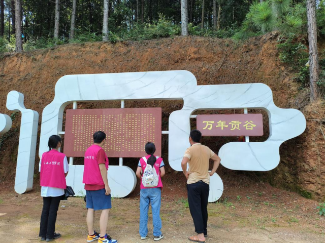 通过这次活动,志愿者们帮助果户打理夏季葡萄园,解决了种植户人手不足、农活堆积难题,为葡萄丰产丰收打下良好基础,并用行动诠释奉献友爱,用辛勤的汗水助力乡村振兴。 传承农耕文化,助力乡村振兴 为让新时代青年学生更好地了解农耕历史、深刻体会农民耕种的辛劳,弘扬辛勤劳动、提倡爱粮节粮的传统美德,在荷桥村委程干部的带领下,志愿者们来到万年贡米原产基地。程干部详细为志愿者们讲述了万年贡米种植区域的特点,万年贡米属野生稻,一年栽一季,生育期180天左右,采用传统农耕方式,施农家肥、人工除草、山泉灌溉和人工收割,且亩产仅300斤。