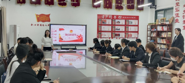 为深入学习宣传贯彻党的二十大精神,进一步提高我校团员发展质量,争取青年人心,汇聚青年力量。旅游商务系团总支于10月23日晚上19:00在芳泽楼302召开第一次团课。本次团课主讲人为刘萍老师。此次团课围绕着“我们的坚守”为主题开展。