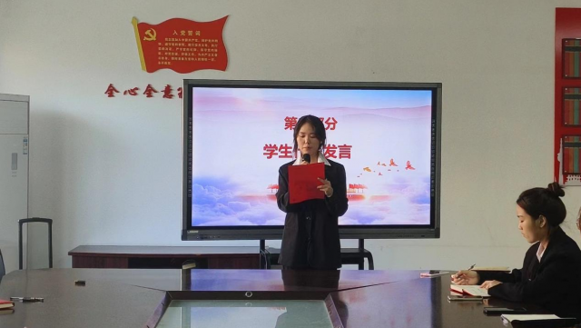 议程第二项由22学前教育3班王书怡同学作学生代表发言,她表示,作为一名团校的新成员,在今后的日子里,她会努力以身作则,发挥桥梁纽带作用,积极参加团校组织的各项活动,用自己的言行给广大同学起到良好的示范作用。