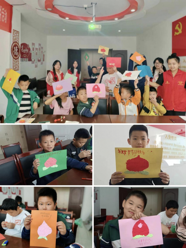 在小朋友们的耐心,细心,精心的制作下,一幅幅充满感情和心意的作品完成了,小朋友们开心骄傲地高高举起自己的作品。在活动顺利结束后,志愿者们嘱咐小朋友们要把亲手制作的手工作品送给爷爷奶奶,并送上美好的祝福。