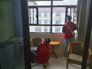 11月4日早上八点,志愿者们集合完毕,在负责人清点人数后前往活动地点。志愿者们到达西湖区养老院关爱、慰问老人,利用周末假日为在养老院居住的老人们打扫卫生。志愿者们怀着紧张的心情小心翼翼地进入老人们的房间,认真仔细地打扫,认真地擦洗着桌椅。