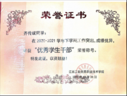 02纸上得来终觉浅,绝知此事要躬行 回想2020年10月,我满怀憧憬地踏进校园。早在入学前,我便规划好了今后努力的方向-坚持学习实践两手抓。在工贸的三年大学时光,我从最初懵懵懂懂的少年,成长为能独当一面的青年。这得益于老师与同学们对我的信任,推选我为班长。在担任班长期间,我积极履行自己的职责,做好事务管理、人员管理、协调沟通、信息收集、数据分析、外联沟通等工作,包括全面负责班级事务的管理、协调班委之间的工作安排、及时传达老师的信息和通知、协调班级外部关系、积极观察并向辅导员汇报班级同学的思想动态和相关情况;另外作为班长,我还需要做好表率,在学习等方面起带头作用,为班级同学营造良好的学习氛围。期间,我努力平衡班务工作与学习时间,使自己在学习、实践方面都能交上满意的答卷。经过努力,我通过了英语四六级考试,获得国家励志奖学金、综合素质奖学金、一等奖学金等多项荣誉。担任班长的经历,让我受益匪浅!班干部事务虽忙且杂,却最教人成长!它不仅锻炼了我为人处事的能力,为我进入社会做好了铺垫;也拓宽了我的眼界,让我学会将集体利益置于个人利益之上。最终,让我朝着成为“知识足眼界宽能力强”的青年的目标前进。