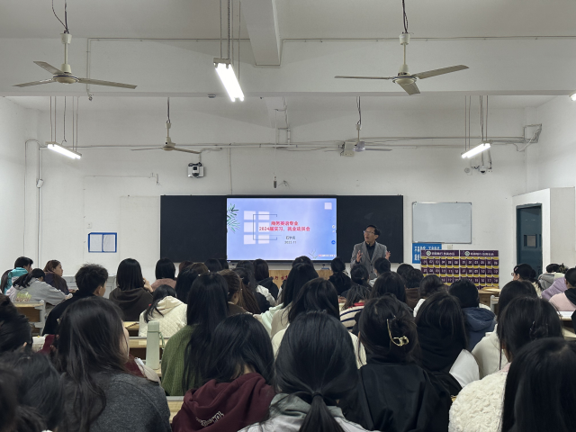 为提升我系商务教研室所属专业2024届毕业生实习就业质量,教研室在前期访企拓岗、积极开拓优质企业,确保学生“好就业”的基础下。本周陆续分专业开展毕业生实习动员大会,讲清讲透实习就业形势、实习就业政策、实习就业选择原则等内容,助力每个毕业生“就好业”,最终实现2024届毕业生“就业好”的目标。 11月13日下午,21级婴幼儿托育服务与管理专业毕业生实习就业动员大会在乐学楼209顺利举行。本次专题讲座由旅游商务系商务教研室主任、专业负责人周万中副教授主讲,21级婴幼儿托育服务与管理专业152名学生全体参与。 本次专题讲座在周万中老师通过幽默风趣的开场,讲述了同学们坐座位的前后和实习薪资水平的高低关系。首先从即将来临的双选会作为开讲,面临十二月初的系部招聘会,周万中老师首先安抚了毕业生们迷茫,烦躁的情绪,耐心地分析了幼教专业毕业生之后可有的各项选择:就业、升学、创业、考编等。 其次,周万中老师通过现实的实际情况为学生讲解了科学的就业实习观念。以及树立科学的就业观,实习单位的选择、先就业后择业、专业对口三个方面。随后,展示了随着近2年幼儿出生数量的减少,专业毕业生当前就业形势比较严峻,但是南昌对于人才补贴也是十分优厚,欢迎同学们服务地方经济,也可以积极走出去外省闯一闯。 最后,周万中老师对同学们提出的各项关于实习和就业的问题进行了现场解答,希望通过这次专题讲座,在未来的就业选择上做出最适合自己的选择。   11月14日中午12:40-14:10,商务英语专业组织2024届毕业班全体学生在志学楼110教室召开了实习、就业动员大会。本次动员会由商务英语专业负责人石学亮副教授主持。动员会上,石学亮老师从实习就业的心理建设、企业及岗位目标、现阶段准备等方面,消除同学们的就业恐惧,帮助同学们合理定位目标,鼓励当前做好应聘准备工作。此次实习就业动员大会的召开明确了商务英语专业毕业实习的目的、要求及具体工作安排,提高了同学们对实习、就业的重视程度,增强了同学们的参与感与责任感。