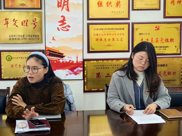 会议第一项由学生党支部书记黄婧带领党员同志学习习近平总书记考察江西重要讲话精神,结合工作开展交流研讨,坚持以习近平新时代中国特色社会主义思想为指导,紧紧围绕“政治功能强、支部班子强、党员队伍强、作用发挥强”主要目标,扎实推进“四强”党支部建设,深刻领会把握习近平总书记考察江西重要讲话精神的丰富内涵、精神实质和实践要求,推动学习宣传贯彻走深走实、见行见效。