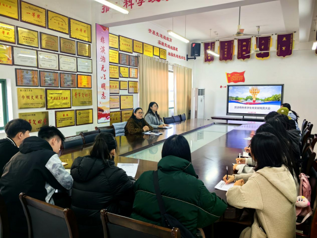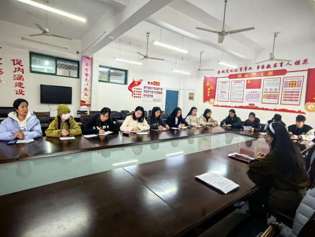 2023年11月14日下午,旅游商务系学生党支部在芳泽楼302召开了全体党员大会,全体党员参会,会议由旅游商务系党支部书记黄婧主持。