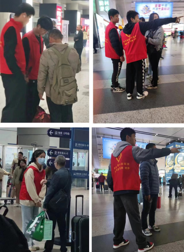 身着红色马甲的青年志愿者在服务期间恪尽职守、认真负责、礼貌待人、不仅为高铁站的工作人员减轻不少工作量,而且还为旅客提供了便利与温暖,充分展现出青年志愿者们的友好奉献服务精神。她们用行动书写青春志愿的答卷。