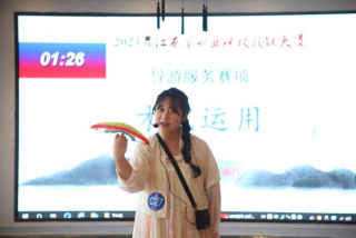 本次江西省职业院校技能大赛高职组“导游服务”赛项与国赛对标,竞赛内容包括3个模块,分别是:(一)导游素养及业务能力测试:其中包括:①从1300道导游知识测试题目(其中300道为神秘题库)中随机抽取5道题目进行现场问答;②自选某一旅游目的地进行4分钟导游讲解;③随机从50个文化元素、5个团型中各抽取1个,有机融合并在30分钟之内完成导游词创作与现场讲解;(二)导游英语口语测试:选手需从80个导游带团情境中随机抽取1个,现场与裁判展开4分钟的情境对话;(三)才艺运用:选手在4分钟30秒内完成带团过程中的导游情境描述及符合情境的才艺展示。