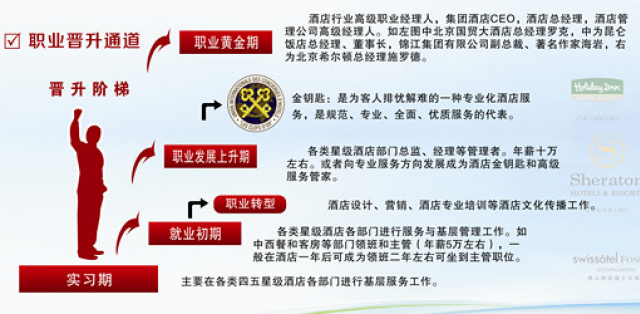 就业方向本专业学生需求巨大,可面向海内外企业从事高星级品牌酒店管理,可前往迪拜、新加坡、澳门等地从事酒店管理相关工作。