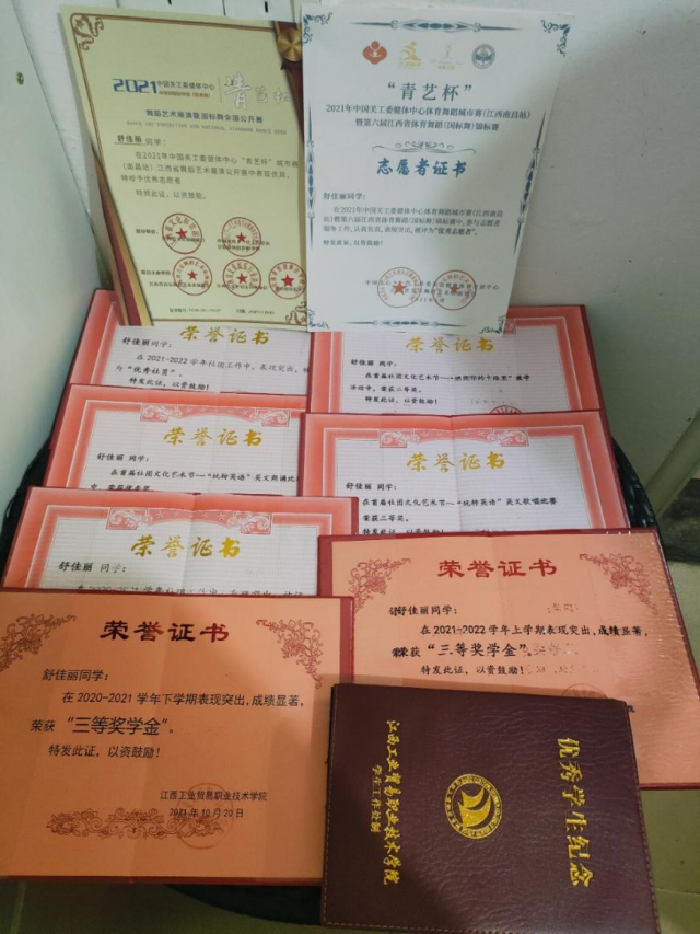舒佳丽,2023届商务英语专业优秀毕业生,共青团员。曾获得三等奖学金、“诵读红色家书”三等奖,“玩转英文歌唱”二等奖、文化艺术节“燃烧你的卡路里”二等奖、第六届江西省体育舞蹈锦标赛优秀志愿者,“玩转英语英文朗诵”优秀奖,“演说之家话剧比赛”优胜奖等。