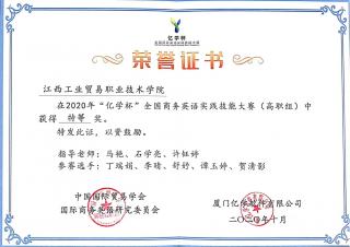 商英专业学生参加2020年“亿学杯”全国商务英语实践技能大赛,荣获高职组特等奖